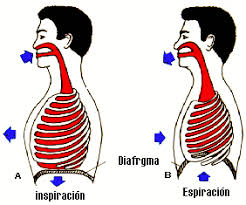 Observa la posición del diafragma en la inspiración y en la espiración. En el canto, se produce además una fase intermedia, llamada bloqueo, un pequeño instante en el que ni entra ni sale aire de nuestro organismo y sirve como preparación para la correcta emisión del sonido, controlando el diafragma.